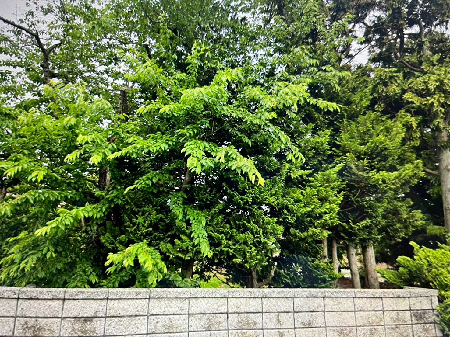 松、スギ、クスノキ、くろがねもち、もみの木、どんぐりの木、